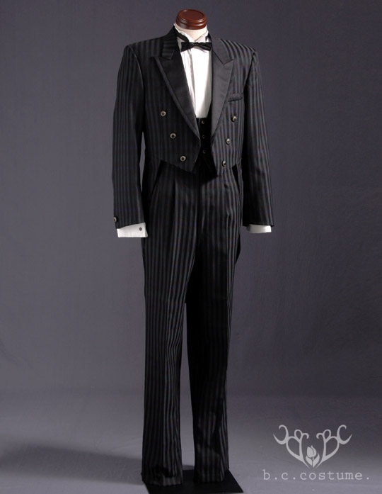 | 内容 | 上着(燕尾)・ベスト・ドレスシャツ・ズボン・蝶タイ・サスペンダー |