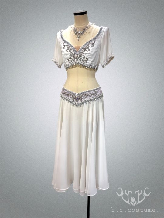 パンツ付スカートは、ローウエストタイプ(ウエストより3.5cm下で着用)です。胸元・腰周りに装飾を華やかに付けました。