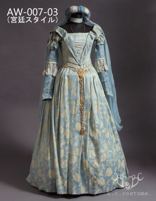 | 内容 | ドレス上(チョーカー付)・ドレス下・ワイヤー入りペチ・袖カバー・ケープ・頭飾り(輪・ネット・ヴェール)・バックルベルト・チェーンベルト *頭飾りのヴェール・チェーン飾りつきベルトは宮廷スタイルの際にご利用ください |